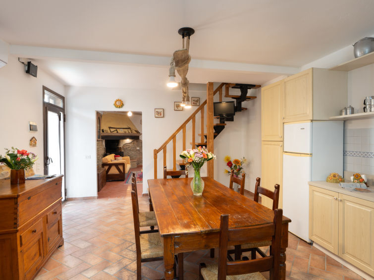 Halfvrijstaand huis 5-kamers 90 m2 op 2 verdiepingen, op de begane grond. Comfortabel en gezellig ingericht: woonkamer met open haard, Sat-TV en air-conditioning. Keuken (4-pits kookplaat, oven, afwasmachine, waterkoker, magnetron, diepvriezer) met open haard, Sat-TV en air-conditioning. Bovenverdieping: 1 2-pers. kamer met air-conditioning. 1 2-pers. kamer met air-conditioning. 1 2-pers. kamer met air-conditioning. 1 kamer met 1 bed en air-conditioning. 2 douche/bidet/WC's. Tuin. Terrasmeubelen, barbecue. Panoramazicht op het landschap. Ter beschikking: wasmachine, klamboe. Internet (WiFi, gratis). Geschikt voor families. Maximaal 1 huisdier/hond toegestaan. IT048027C2QCXGWSI7