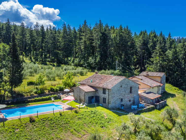 Zeer panoramisch gelegen boven de vallei, 's nachts zijn zelfs de lichten van Florence zichtbaar. Elke 30 minuten vertrekt een trein naar Florence vanuit Pontassieve, waar ook een gratis parkeerterrein is. Het zwembad is omheind, ideaal voor families. Alle appartementen beschikken over een buitenruimte met terrasmeubelen in de tuin. In het eerste gebouw wonen de eigenaren en in het tweede zijn 4 zelfstandige appartementen gerealiseerd. De gebouwen staan midden op een stenen plein, omringd door een bos met sparren en kastanje- en pijnbomen. Hier bevinden zich talrijke wandel- en fietspaden (mountainbike). Zeer oud landhuis "Certina", 510 m boven zeeniveau, gerenoveerd, omgeven door bomen. 13 km van het centrum van Pontassieve, 30 km van het centrum van Firenze, rustige, verhoogde ligging op een heuvel, te midden van groen. Voor medegebruik: terrein 33 ha, tuin, openluchtzwembad omheind (6 x 12 m, 130 - 160 cm diepte, seizoensgebonden beschikbaarheid: 06.Mei. - 23.Sep.) met trap. Buitendouche, barbecue. Voor alleengebruik: terras, tuinmeubelen. In het huis: centrale verwarming, wasmachine (voor medegebruik), Verwarming ter plaatse te betalen, verwarming alleen beschikbaar van 01.Nov. - 07.Apr.. Wissel van linnengoed 1 maal per week. Schoonmaak op verzoek (extra). Toegangsweg tot aan het huis (1 km onverharde weg). Parkeerplaats bij het huis. Winkel 5 km, restaurant 7 km, bushalte 4.7 km, treinstation "Pontassieve" 13 km.