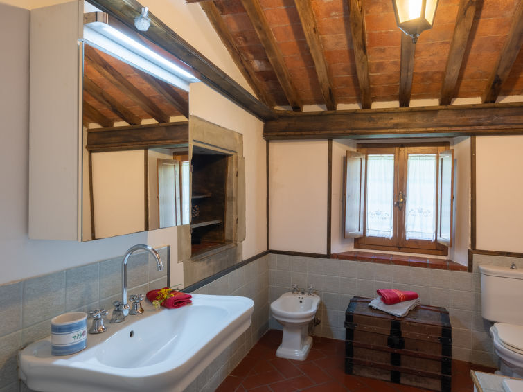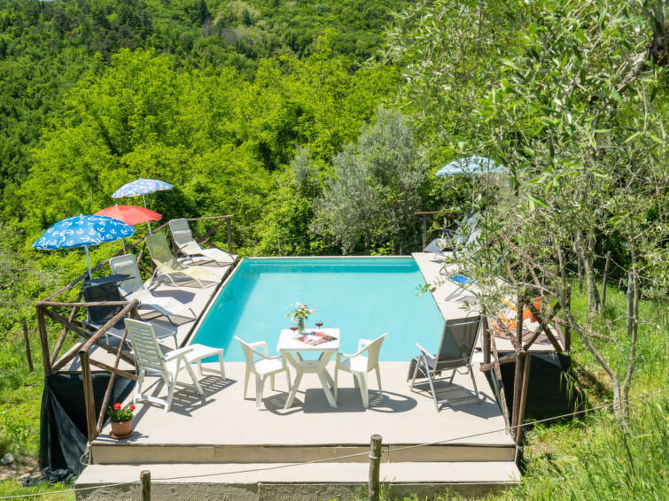 Boerderij "Il Castagneto", 400 m boven zeeniveau. 2 huizen in de plaats. 8 km van het centrum van Rufina, 16 km van het centrum van Pontassieve, 35 km van het centrum van Firenze, geïsoleerde, rustige ligging, te midden van groen, in het bos. Voor medegebruik: tuin 1 ha (niet omheind). Voor alleengebruik: openluchtzwembad (verhoogd) (8 x 5 m, 150 - 150 cm diepte, seizoensgebonden beschikbaarheid: 03.Mei. - 27.Sep.). Tuinmeubelen, barbecue. In het huis: centrale verwarming, wasmachine (voor medegebruik), Verwarming ter plaatse te betalen, verwarming alleen beschikbaar van 01.Nov. - 07.Apr.. Smalle toegangsweg tot aan het huis (500 m onverharde weg). Parkeerplaats op het terrein. Winkel 8 km, supermarkt 8 km, meer (zwemmen) "Lago di Bilancino" 48 km. Attracties in de buurt: Dicomano 12 km, Vicchio 27 km, Fiesole 33 km. Auto noodzakelijk. De eigenaar woont op hetzelfde terrein. Let op: de huiseigenaar produceert honing en olie hetgeen in de zomer bijen kan aantrekken nabij de woning.