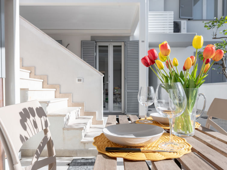 "Pianosa", appartement 3-kamers 90 m2, op de begane grond. Ruim, modern en smaakvol ingericht: woonkamer met 1 2-pers divanbed, eettafel, kookhoek en TV. Uitgang naar de loggia. 1 2-pers. kamer. 1 groot kamer met 1 2-pers bed, 1 slaapplaats, eethoek, kookhoek en douche/bidet/WC. Uitgang naar de loggia. Open keuken (afwasmachine, 4 kookpitten (vlammen), broodrooster, waterkoker, magnetron, elektrische koffiemachine). Uitgang naar de loggia. Douche/bidet/WC. Air-conditioning, heteluchtverwarming. Verwarming alleen beschikbaar van 01.11. tot 15.04. Groot terras gedeeltelijk overdekt, groot terras 30 m2. Terrasmeubelen. Ter beschikking: wasmachine, klamboe, kinderbed tot 2 jaar, haardroger. Internet (WiFi, gratis). Parkeerplaats (omheind, 1 Auto) op 200 m. Maximaal 1 huisdier/hond toegestaan. Rookmelders, brandblusser. Geen interne verbinding tussen de aparte wooneenheden. IT053009C23YQSS45S