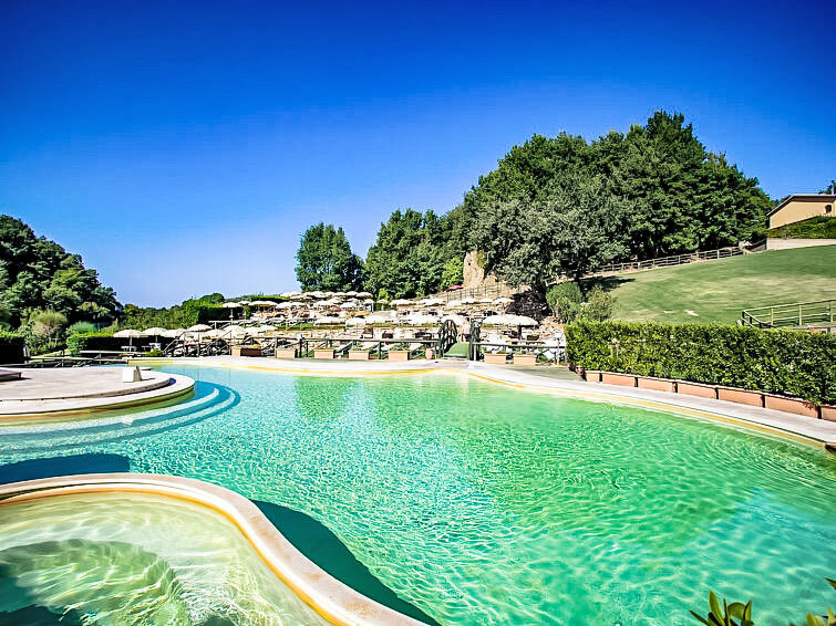 Vakantiedorp met 30 appartementen en 10 villa's met gebruik van 2 zwembaden, 1 met thermaal water van 37 C (350 mq, onregelmatige vorm), het hele jaar geopend, gebruik van badmuts verplicht. Gezondheidscentrum met gezichts- en lichaamsbehandelingen, diverse arrangementen, ter plaatse te boeken. Fitness en fietspaden, manege, drank- en spijstours. Het ligt 460 m boven de zeespiegel, vlakbij de 1000 jaar oude Pieve di S. Maria dell'Aquila. Mooi vakantiecomplex "Thermae", 460 m boven zeeniveau. 10 huizen in de woning. 30 appartementen in de woning. 3 km van het centrum van Sorano, 7 km van het centrum van Pitigliano, zonnige ligging, 55 km van zee, te midden van groen. Voor medegebruik: park 6 ha, 2 zwembaden (17 x 11 m, seizoensgebonden beschikbaarheid: 01.Jan. - 31.Dec.) met trap. Onregelmatig zwembad. Kinderzwembad, buitendouche, tennisbaan, tafeltennis, barbecue, kinderspeelplaats. In het complex: receptie, restaurant, bar, Internet (WiFi), massage (extra). Hot tub (extra). Zonneterras, wasserette, wasmachine (voor medegebruik, extra), Verwarming ter plaatse te betalen, verwarming alleen beschikbaar van 01.Nov. - 15.Apr., fietsen beschikbaar (extra). Wissel van linnengoed 1 maal per week. Schoonmaak op verzoek (extra). Ontbijt en half pension op aanvraag (extra). Toegangsweg tot aan het huis. Parkeerplaats op 200 m. Oplaadstation. Levensmiddelenwinkel 3 km, supermarkt 7 km, restaurant 3 km, bushalte 300 m, zandstrand 55 km, meer (zwemmen) "Bolsena" 25 km. Manege 800 m. Attracties in de buurt: Grotte Di Castro 22 km, Saturnia 28 km, Capalbio 52 km, Monte Argentario 45 km. Bekende meren kunnen gemakkelijk worden bereikt: Bolsena 25 km. Auto noodzakelijk. Geschikt voor families. Het complex wordt s´nachts bewaakt. Gesloten residentie met een elektrische deur. De afgebeelde foto is slechts een voorbeeld. Badmuts verplicht.