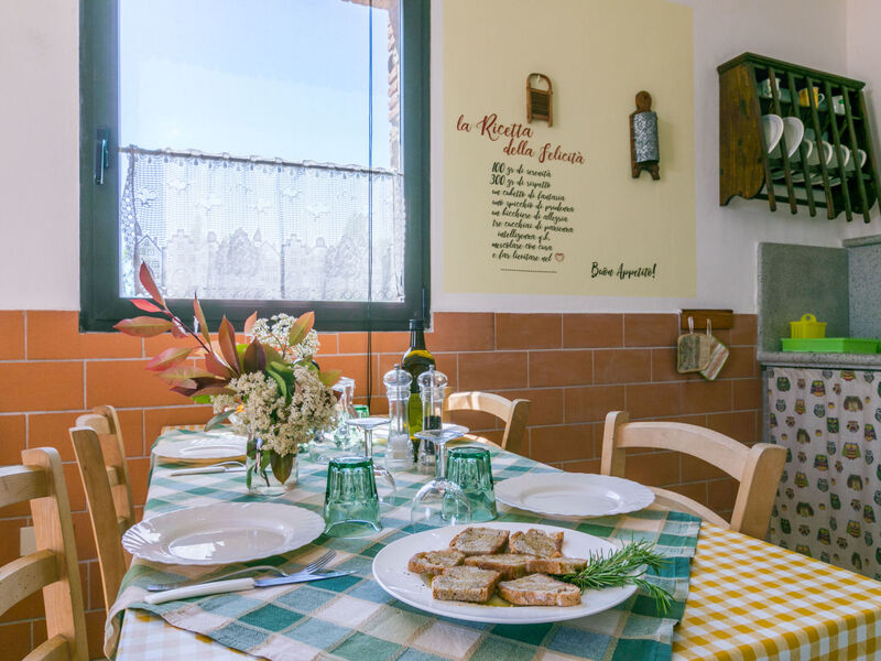 "Levante", appartement 3-kamers 65 m2, op de begane grond. Mooi en smaakvol ingericht: woon-/eetkamer. 1 2-pers. kamer. 1 kamer met 2 bedden. Open keuken (Gasfornuis, 4 kookpitten (vlammen), broodrooster, waterkoker, elektrische koffiemachine) met eettafel. Douche/bidet/WC. Gas-verwarming (extra). Ruime zithoek in de tuin 25 m2, gedeeltelijk overdekt. Terrasmeubelen, barbecue, ligstoelen (2). Mooi uitzicht op het landschap. Ter beschikking: wasmachine, strijkijzer, klamboe, kinderstoel, kinderbed tot 2 jaar, haardroger. Internet (WiFi, gratis). Maximaal 2 huisdieren/honden toegestaan. Privé ingang. IT049001B5LV2C3KD4