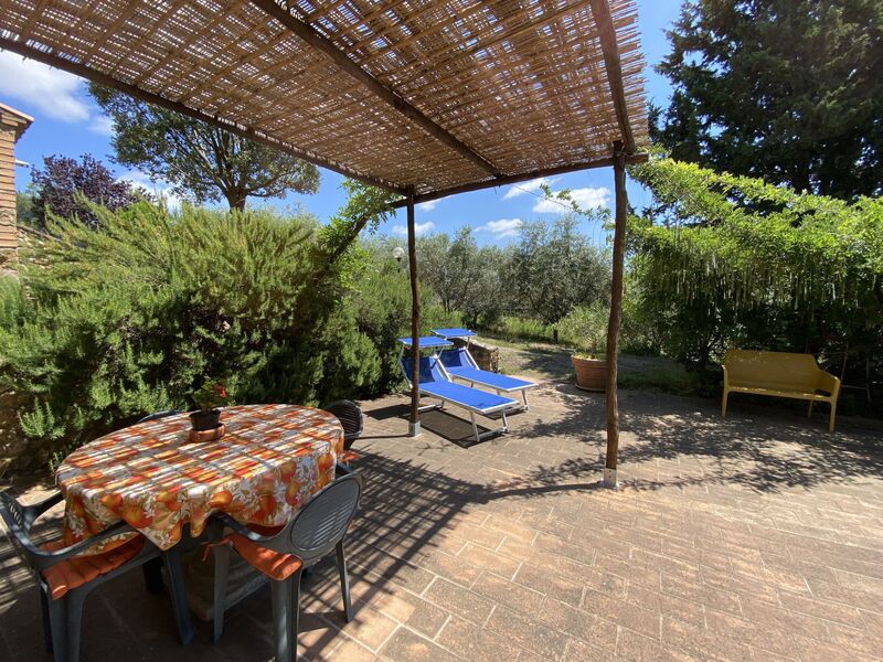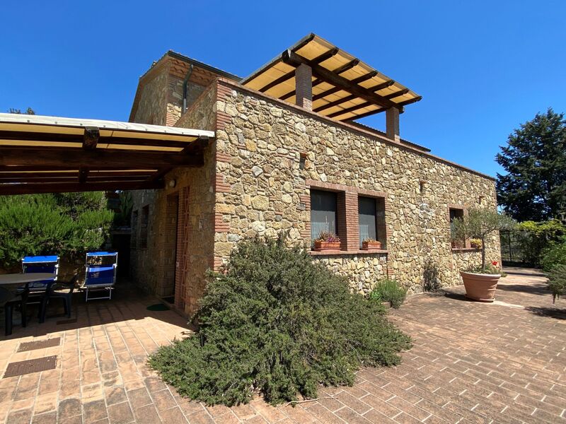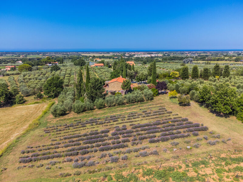 Huis met 3 woningen van 2 verdiepingen, omgeven door bomen en velden. 3.5 km van het centrum van Bibbona, 9 km van het centrum van Cecina, geïsoleerde, rustige ligging, 7.5 km van zee. Voor medegebruik: wild terrein, tuin (niet omheind). In het complex: receptie, restaurant. Ontbijt op aanvraag (extra). Toegangsweg (1.2 km onverharde weg). Overdekte parkeerplaats bij het huis. Levensmiddelenwinkel 3.5 km, supermarkt 8 km, bakkerij 3.5 km, bushalte 2 km, zandstrand "Marina di Cecina" 7.5 km, thermaalbad "Calidario" 36 km. Jachthaven 25 km. Attracties in de buurt: Bolgheri 8 km, Pisa 65 km, Livorno 45 km, Firenze 120 km. Op het grondstuk dierhouderij. Lokale verkoop van streekproducten.