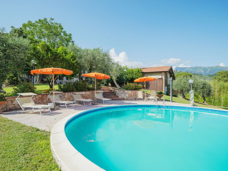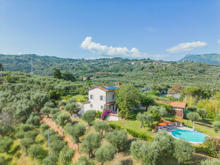 Piano di Conca 6 km van Massarosa: Losstaande woning in de bergen met een panoramisch uitzicht over de Versilia’s kustlijn. De woning ligt op een uitgestrekt privéterrein met tuinen, een olijfgaard, een boomgaard, een zwembad en een 5-a-side voetbalveld. Naast het feit dat het een erg rustige locatie is, is de woning gunstig gelegen dichtbij de belangrijkste toeristische routes van Toscane. Het zwembad onderhoud wordt elke zaterdag tussen 9.00 en 15.00 gedaan. Rustieke villa "Villa Le Casette", gerenoveerd, omgeven door bomen en weiden. 6.5 km van het centrum van Viareggio, 26 km van het centrum van Pisa, 25 km van het centrum van Lucca, 6.5 km van zee, 3 km van het meer, 6.5 km van het strand, te midden van groen. Voor alleengebruik: tuin 1.200 m2 met gazon, openluchtzwembad rond (8 m diameter, 120 cm diepte, seizoensgebonden beschikbaarheid: 13.Mei. - 30.Sep.). Tuinmeubelen, barbecue, onderhoud zwembad door de eigenaar/tuinman. Verwarming alleen beschikbaar van 01.Nov. - 15.Apr.. Toegangsweg tot aan het huis (500 m onverharde weg). Parkeerplaats op het terrein. Winkel 2 km, bushalte 500 m, treinstation "Viareggio" 6.5 km. Tennis 8 km. Auto noodzakelijk.
