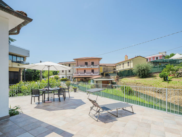Appartement 2-kamers op de 1e verdieping. Mooi en gezellig ingericht: open woonkamer met TV en Flatscreen TV. 1 2-pers. kamer met ventilator. Open keuken (oven, afwasmachine, 4 kookpitten (vlammen), broodrooster, magnetron, elektrische koffiemachine) met eettafel. Uitgang naar het terras. Douche/bidet/WC. Geen verwarmingsmogelijkheid. Groot terras 30 m2. Terrasmeubelen, ligstoelen (2). Ter beschikking: wasmachine, strijkijzer, haardroger. Internet (WiFi). Niet rokers woning. Privé ingang, rookmelders, brandblusser. IT045010C2XEWKSNNO