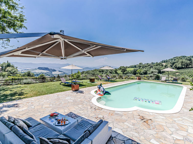 Gezellige villa "Chateau Le Siroque", vrijstaand, omgeven door weiden. 3 km van het centrum van Montecatini Val di Cecina. Voor medegebruik: openluchtzwembad (6 x 12 m, 140 cm diepte, seizoensgebonden beschikbaarheid: 15.Mei. - 30.Sep.). Buitendouche, hot tub. Voor alleengebruik: park 2.000 m2. Buitendouche, tuinmeubelen, barbecue.
