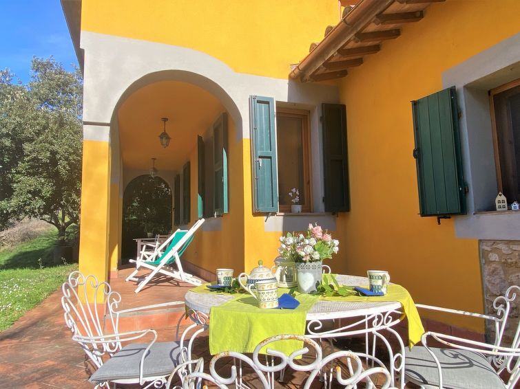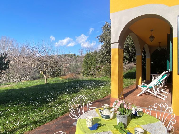 Huis "Il Frutteto", omgeven door bomen en weiden. 1 km van het centrum van Montescudaio, 8.5 km van het centrum van Cecina, 10 km van zee. Voor alleengebruik: wild terrein 1 ha, bomen, weide. Toegangsweg (20 m onverharde weg). Parkeerplaats bij het huis. Winkel 750 m, supermarkt 13 km, winkelcentrum 7 km, restaurant 500 m, bakkerij 750 m, bushalte "Montescudaio" 500 m, zandstrand "Marina di Cecina" 10 km, rotsstrand "Baia del Quercetano" 27 km, thermaalbad "Calidario" 40 km. Attracties in de buurt: Bolgheri 16 km, Pisa 61 km, Firenze 97 km. Eerste verdieping is afgesloten en niet bewoond.
