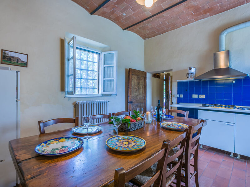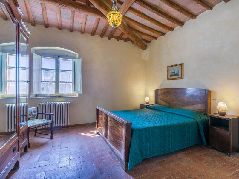 Boerderij omgeven door wijn- en olijfboomgaarden van de Chiantistreek. Elk van de 12 appartementen, gelegen in het herenhuis en in een voormalige hooischuur, beschikt over een eigen buitenruimte of over een eettafel op de terassen rondom het hoofdgebouw. Centrale ligging, ideaal om op verkenningstocht te gaan door het mooie landschap en om de culturele bezienswaardigheden van de regio te bezoeken. Boerderij "La Moraia", gerenoveerd. 14 km van het centrum van Castellina in Chianti, 18 km van het centrum van San Gimignano, 50 km van het centrum van Firenze, verhoogde ligging, te midden van groen. Voor medegebruik: tuin, openluchtzwembad (7 x 14 m, 120 - 160 cm diepte, seizoensgebonden beschikbaarheid: 09.Mei. - 26.Sep. openingstijden zwembad: 09:00-19:00). Patio, barbecue. In het huis: centrale verwarming, wasmachine (voor medegebruik, extra), Verwarming ter plaatse te betalen, verwarming alleen beschikbaar van 01.Nov. - 04.Apr.. Toegangsweg tot aan het huis (1 km onverharde weg). Parkeerplaats. Supermarkt 5 km, restaurant 5 km, bushalte 5 km, treinstation "Poggibonsi" 5 km, thermaalbad "Rapolano Terme" 55 km. Tennis 5 km. Attracties in de buurt: Monteriggioni 14 km, Barberino Val d'Elsa 16 km, San Donato 21 km, Radda in Chianti e Badia a Passignano 25 km, Siena 30 km, Volterra 38 km. De afgebeelde foto is slechts een voorbeeld. Vergelijkbare accommodaties kunnen worden geboekt.
