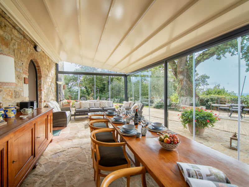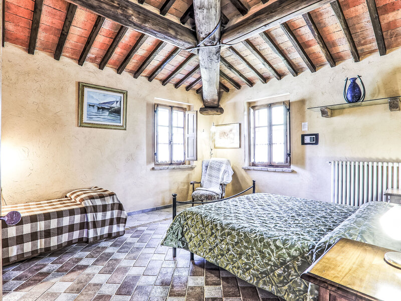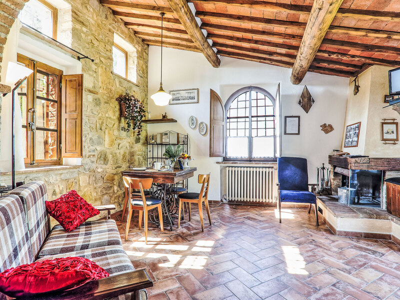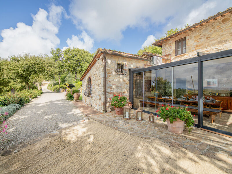 Casale il Poggino, gelegen in het hart van de Chianti Classico, bestaat uit twee eenheden, de boerderij die is verdeeld in drie appartementen (voor 14 personen) die met elkaar communiceren vanaf de buitenkant en het bijgebouw (voor 02 personen). Landhuis "Casale Il Poggino", 400 m boven zeeniveau. 2 huizen in de woning. 5.8 km van het centrum van Castellina in Chianti, 26 km van het centrum van Siena, 42 km van het centrum van Firenze, geïsoleerde, rustige, zonnige ligging op een heuvel, te midden van groen. Voor alleengebruik: tuin 1 ha (omheind), openluchtzwembad omheind (12 x 6 m, 120 - 240 cm diepte, seizoensgebonden beschikbaarheid: 01.Apr. - 31.Okt.). Buitendouche, tafeltennis, prieel, tuinmeubelen, barbecue. In het complex: fitnessruimte, bergruimte voor fietsen, Verwarming ter plaatse te betalen, verwarming alleen beschikbaar van 01.Nov. - 07.Apr., fietsverhuur. Beschikbaar: fietsen (4). Kok op verzoek (extra). Toegangsweg tot aan het huis (1.5 km onverharde weg). Overdekte parkeerplaats op het terrein. Levensmiddelenwinkel 5.8 km, supermarkt 5.8 km, restaurant 5.8 km, bushalte 3.5 km, thermaalbad "Rapolano Terme" 50 km. Attracties in de buurt: San Donato in Poggio 16 km, Radda in Chianti 16 km, Monteriggioni 18 km, Gaiole in Chianti 19 km, Greve in Chianti 25 km, San Gimignano 47 km. Gesloten residentie met een elektrische deur. Videobewaking in de buitenruimte.