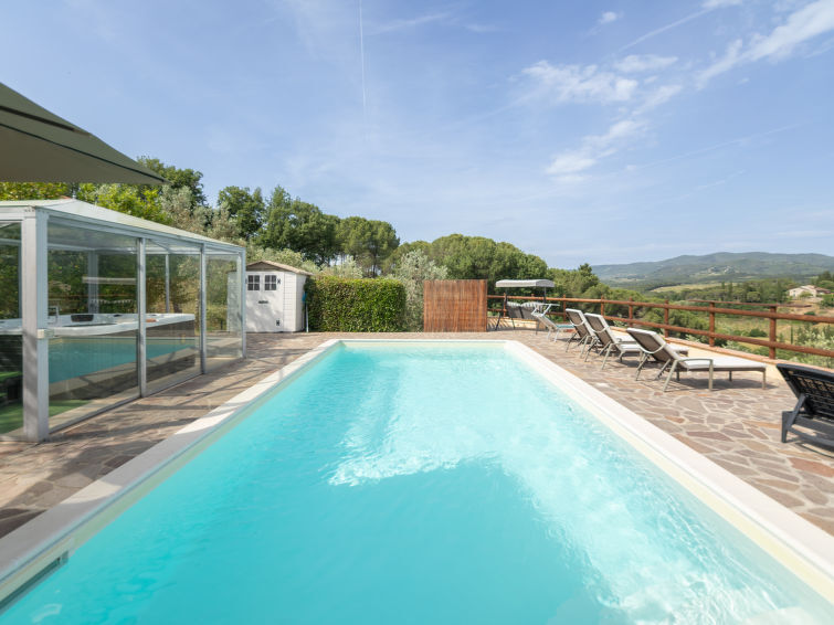 Landhuis "Pilar", vrijstaand. 1 km van het centrum van Strada in Chianti, 11 km van het centrum van Greve in Chianti, 20 km van het centrum van Firenze, rustige, zonnige ligging tegen een helling, te midden van groen. Voor alleengebruik: tuin 1 ha (omheind), openluchtzwembad (8 x 4 m, 160 - 160 cm diepte, seizoensgebonden beschikbaarheid: 24.Mei. - 27.Sep.). Buitendouche, tuinmeubelen, barbecue, onderhoud zwembad door de eigenaar/tuinman. In het complex: fitnessruimte, hot tub, centrale verwarming, verwarming alleen beschikbaar van 01.Nov. - 15.Apr.. Parkeerplaats op het terrein. Winkel 1 km, supermarkt 1.5 km, restaurant 1 km, bushalte 1.5 km, zandstrand "Versilia" 117 km, thermaalbad "Rapolano Terme" 70 km. Golfterrein (18 holes) 6 km. Attracties in de buurt: San Casciano in Val di Pesa 14 km, Badia a Passignano 20 km, Barberino Val D'elsa 25 km, San Donato in Poggio, Radda in Chianti 29 km, Castellina in Chianti 30 km, Siena 55 km. Het is mogelijk een kookcursus te boeken.