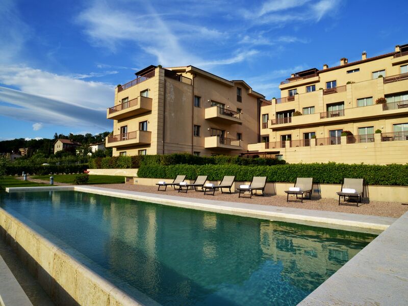 Moderne, luxueuze residentie "Fonteliving". 15 appartementen in de woning. 800 m van het centrum van San Casciano dei Bagni, zonnige ligging in een woonwijk. Voor medegebruik: mooie, verzorgde tuin met gazon en bloemen, openluchtzwembad (15 x 3 m, 140 - 140 cm diepte, seizoensgebonden beschikbaarheid: 15.Mei. - 15.Okt.). Buitendouche. In het huis: receptie, Internet (WiFi), lift, centrale verwarming. Schoonmaak op verzoek (extra). Parkeerplaats op het terrein. Levensmiddelenwinkel, restaurant 900 m, bushalte 300 m, thermaalbad "San Casciano" 900 m. Wandelroutes 100 m vanaf het huis. Attracties in de buurt: Radicofani 18 km, Acquapendente 25 km, Abbadia San Salvatore 30 km, Monte Amiata 35 km. Auto noodzakelijk. Autobaan 20 km van het huis.