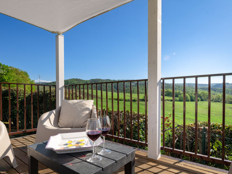 "Vineyard View", villa 6-kamers 220 m2, op de begane grond. Zeer comfortabel en mooi ingericht: groot hal met Sat-TV (Flatscreen TV). Uitgang naar de tuin. 1 2-pers. kamer met douche/bidet/WC en air-conditioning. 1 2-pers. kamer met air-conditioning. 1 2-pers. kamer met air-conditioning. 1 kamer met 2 bedden en air-conditioning. Open galerij met 1 2-pers divanbed. Groot woonkeuken (6-pits kookplaat, oven, afwasmachine, broodrooster, waterkoker, magnetron, diepvriezer, elektrische koffiemachine, pads voor de koffiemachine (Nescafè 1 box), pizzaoven) met eettafel. Bad/bidet/WC, douche/bidet/WC. Natuurstenen vloeren. Comfortabele inrichting in landelijke stijl. Klein terras, zithoek in de tuin. Terrasmeubelen, barbecue. Zeer mooi panoramazicht op het landschap. Ter beschikking: wasmachine, droger, strijkijzer, klamboe, kinderstoel, kinderbed. Internet (WiFi, gratis). Maximaal 2 huisdieren/honden toegestaan. IT052028B4OMZ8MZVN