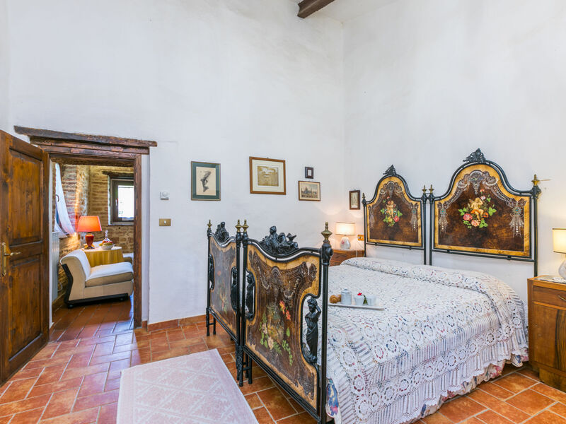 "Focolare", appartement 3-kamers op verhoogde begane grond. Het objekt is geschikt voor 2 volwassenen + 2 kinderen. Ruim, rustiek en gezellig ingericht: woon-/eetkamer met open haard en TV (Flatscreen TV). Doorgangskamer met 1 2-pers bed. 1 2-pers. kamer met douche/bidet/WC. Open keuken (Gasfornuis, 4 kookpitten (vlammen), broodrooster, waterkoker, magnetron, elektrische koffiemachine). Gas-verwarming (extra). Natuurstenen vloeren. Terras, ruime zithoek in de tuin. Terrasmeubelen, barbecue, loggia. Zeer mooi panoramazicht op het landschap, het dorp en Trequanda. Ter beschikking: strijkijzer, klamboe, kinderstoel, kinderbed tot 2 jaar, haardroger. Internet (Internet (WiFi), gratis). Parkeerplaats bij het huis. Koelkast zonder vriesvak, niet rokers woning. Privé ingang. IT052036B5MZBPD5P3